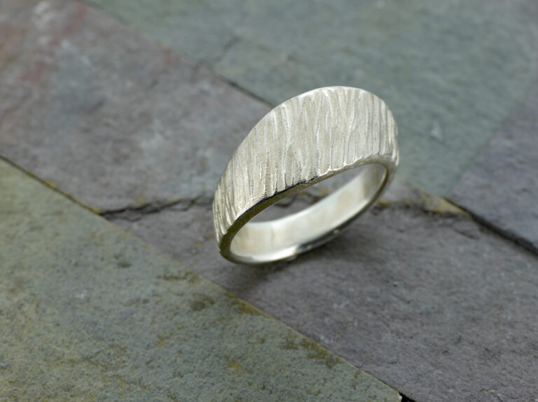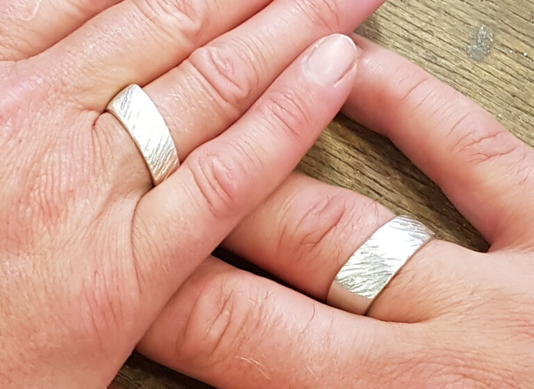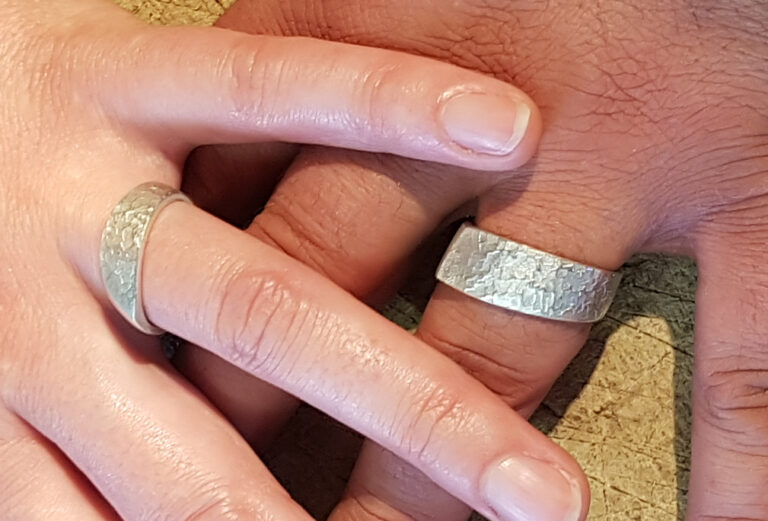 Auswählen darf man unter verschiedenen Modellen und entscheidet sich für eine der zahlreichen meist geschmiedeten oder geschliffenen Oberflächen ….und dann gehts los! …. Kostet 180,- bis 280,- Euro bei massiven Ringrohlingen.